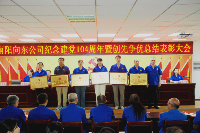 6月27日下午,南陽向東公司在向東工業(yè)園隆重召開慶祝中國共產(chǎn)黨成立104周年暨創(chuàng)先爭優(yōu)總結(jié)表彰大會(huì),重溫黨的光輝歷程,謳歌黨的豐功偉績,推動(dòng)深入貫徹中央八項(xiàng)規(guī)定精神學(xué)習(xí)教育走深走實(shí),進(jìn)一步增強(qiáng)基層黨支部的凝聚力和戰(zhàn)斗力,激發(fā)廣大黨員干部在公司高質(zhì)量發(fā)展的新征程中攻堅(jiān)克難、砥礪前行。公司領(lǐng)導(dǎo)喬新濤、冀紅波、李允東、姜華、郭方、丁玨、王友志、李天波、楊學(xué)義、吳維芳以及兩級(jí)領(lǐng)導(dǎo)干部、各黨支部書記、黨員代表、入黨積極分子共80余人參加會(huì)議。會(huì)議由黨群工作部副部長丁玲主持。